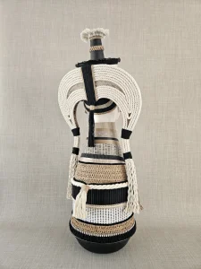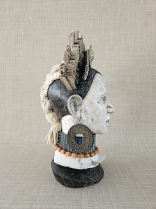 The sculptures are created through an intuitive, hands-on process using cardboard, paper, papier-mâché, fibre, and other natural or reclaimed materials. Their raw, tactile quality references the material traditions of early societies, reinterpreted through a contemporary artistic lens.